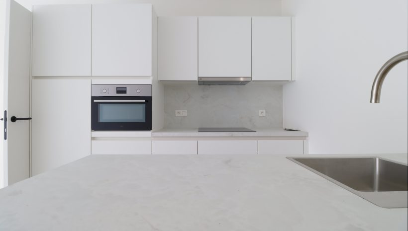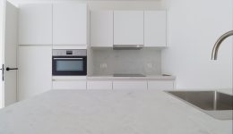 Man gelangt vom Hauseingang direkt in das großzügige, lichtdurchflutete Wohnzimmer. Eine stilvolle Küche ist bereits eingebaut worden und verfügt über eine kleine Kücheninsel, an der man auch sitzen kann. Die großen Schiebeelemente durchfluten den Raum mit Tageslicht. Eine Terrasse lädt zum Entspannen an schönen Tagen ein.
